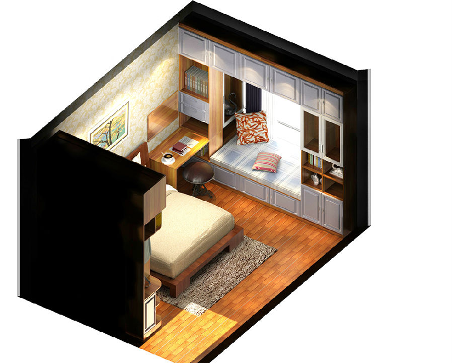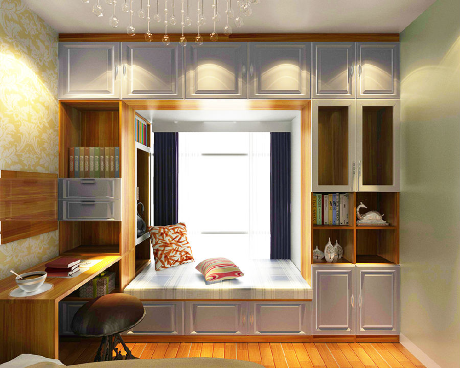 時(shí)尚洋氣的榻榻米造型,多個(gè)收納空格,不僅在功能上實(shí)現了一房多用,還擴大了整體的收納空間。暖暖的色感,讓人有一種寧靜感,雖然面積不大,但是一切都井然有序,是小家庭的選擇。