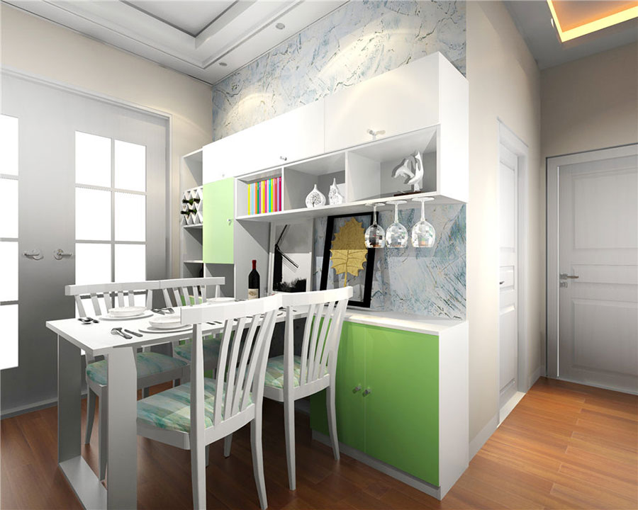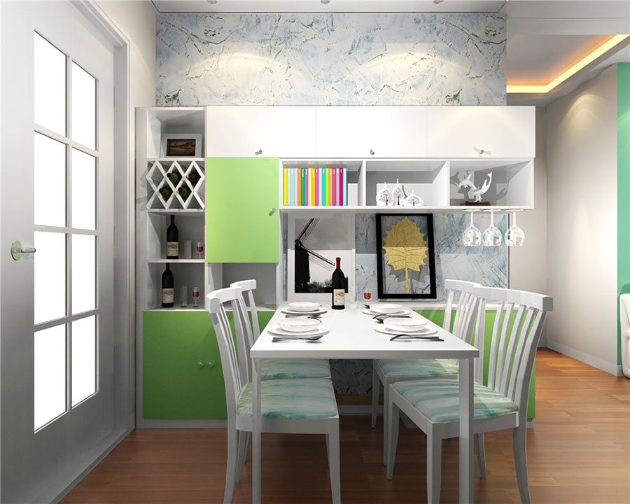 入眼可及處,滿(mǎn)滿(mǎn)的綠色縈繞,給人一種回歸自然的親切感,酒柜與書(shū)柜合二為一,充分發(fā)揮一柜兩用的收納功能,在美觀(guān)的同時(shí)盡顯收納之美。田園風(fēng)味十足的背景墻,為整體格局增添了一絲朦朧之感,令人陶醉其中。