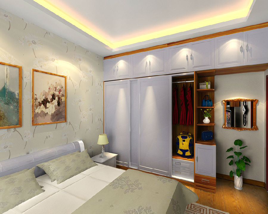 清新淡雅的莫蘭迪配色,讓整個(gè)視覺(jué)更加飽滿(mǎn)。純白色的衣柜顏色,讓整體布局更顯寬闊,也更具有空間感,視覺(jué)體驗上也多了一份高雅,在燈光的照耀下,更加清新脫俗。