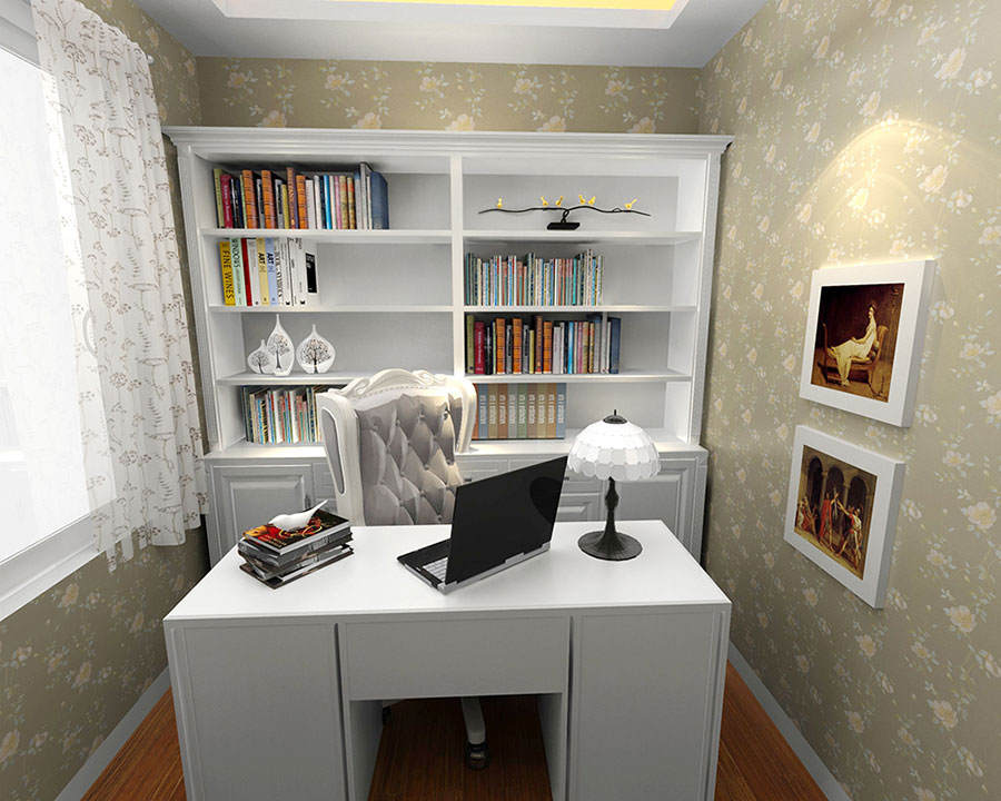 開(kāi)放式的空間造型,更能凸顯美式的自由與奔放,同時(shí)整體空間也更顯寬闊。純白素雅的色彩,襯托地書(shū)桌更加大氣磅礴,沒(méi)有過(guò)于復雜的裝飾,一切都是那么渾然天成。