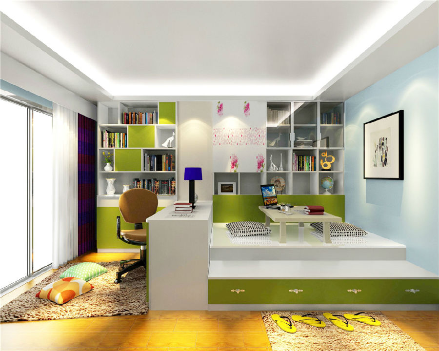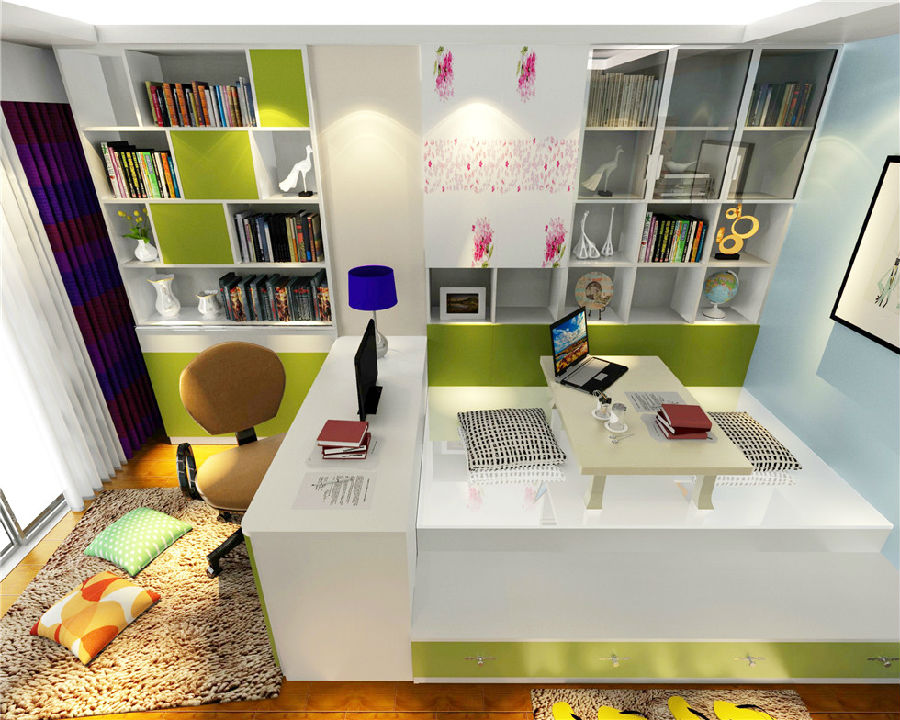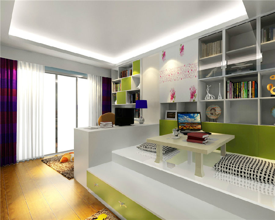 簡(jiǎn)潔流暢的線(xiàn)條中,運用大量的護眼色彩,讓人視覺(jué)上更加放松。榻榻米的設計造型,獨立的空間,真正實(shí)現一房?jì)捎,絕對是小戶(hù)型家庭的首選。
