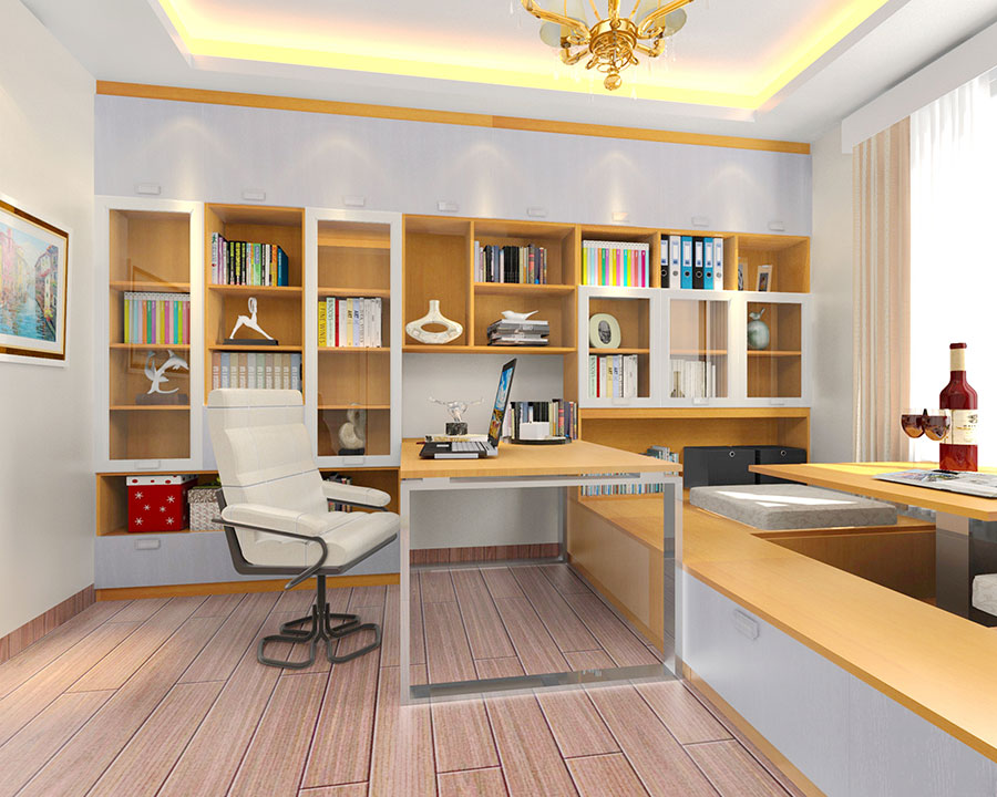 純白色與暖黃色的完美契合,讓整體空間更顯得溫馨與舒適,也能更好的保護視力。書(shū)房,本是一個(gè)令人寧心靜氣的地方,柔和的色彩會(huì )讓人更快的投入其中,獨立的空間,讓您更高效率的工作與學(xué)習。